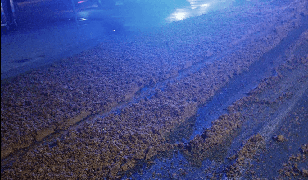 „Jabłkowy potop” w Białej Rawskiej. Przez środek miasta rozlała się duża ilość gęstego jabłkowego płynu.