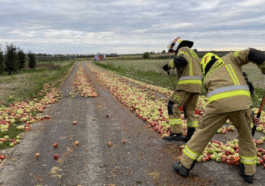 Droga zasypana… jabłkami. Nietypowa interwencja strażaków w gminie Dwikozy