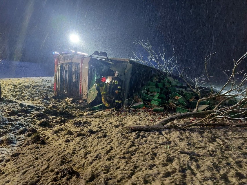 Ciężarówka wypełniona jabłkami przewróciła się