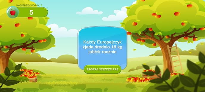 Gracze znajdą wiele nieoczywistych ciekawostek, którymi będą mogli zaskoczyć przyjaciół i rodziców, np.: ile ważyło najcięższe jabłko na świecie?, ile odmian jabłoni mamy w Polsce?, jaki był najdroższy prezent walentynkowy związany z jabłkami? Czy też ile boisk piłkarskich zajęłyby wszystkie polskie sady?.