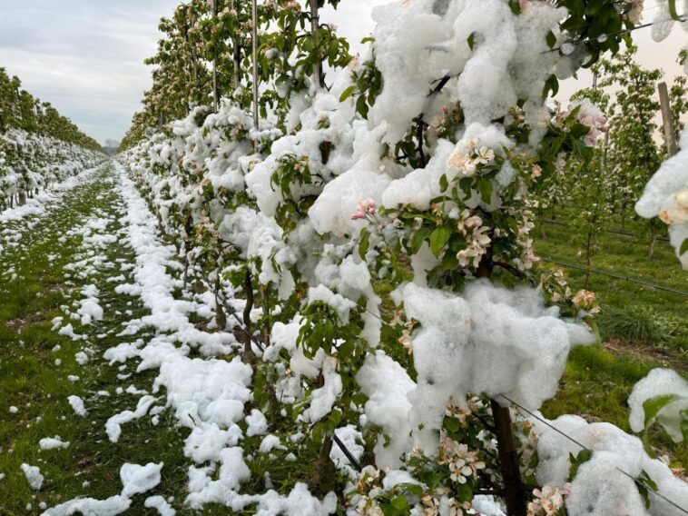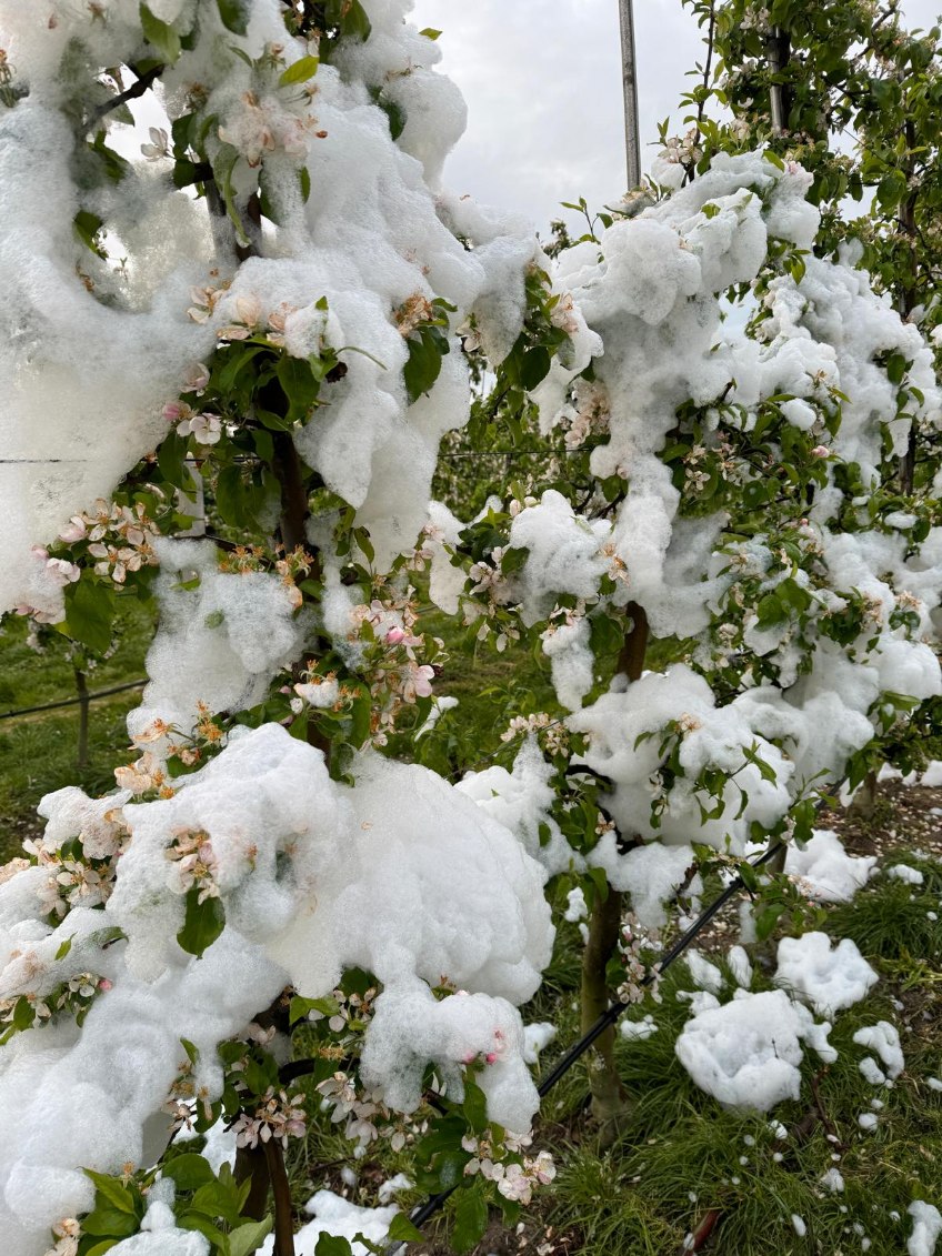 Pierwsze testy przyniosły bardzo obiecujące rezultaty. Sadownicy zauważyli, że drzewa pokryte pianą wyglądały, jakby były obsypane śniegiem – ale w przeciwieństwie do śniegu, ta warstwa chroniła rośliny przed uszkodzeniami.