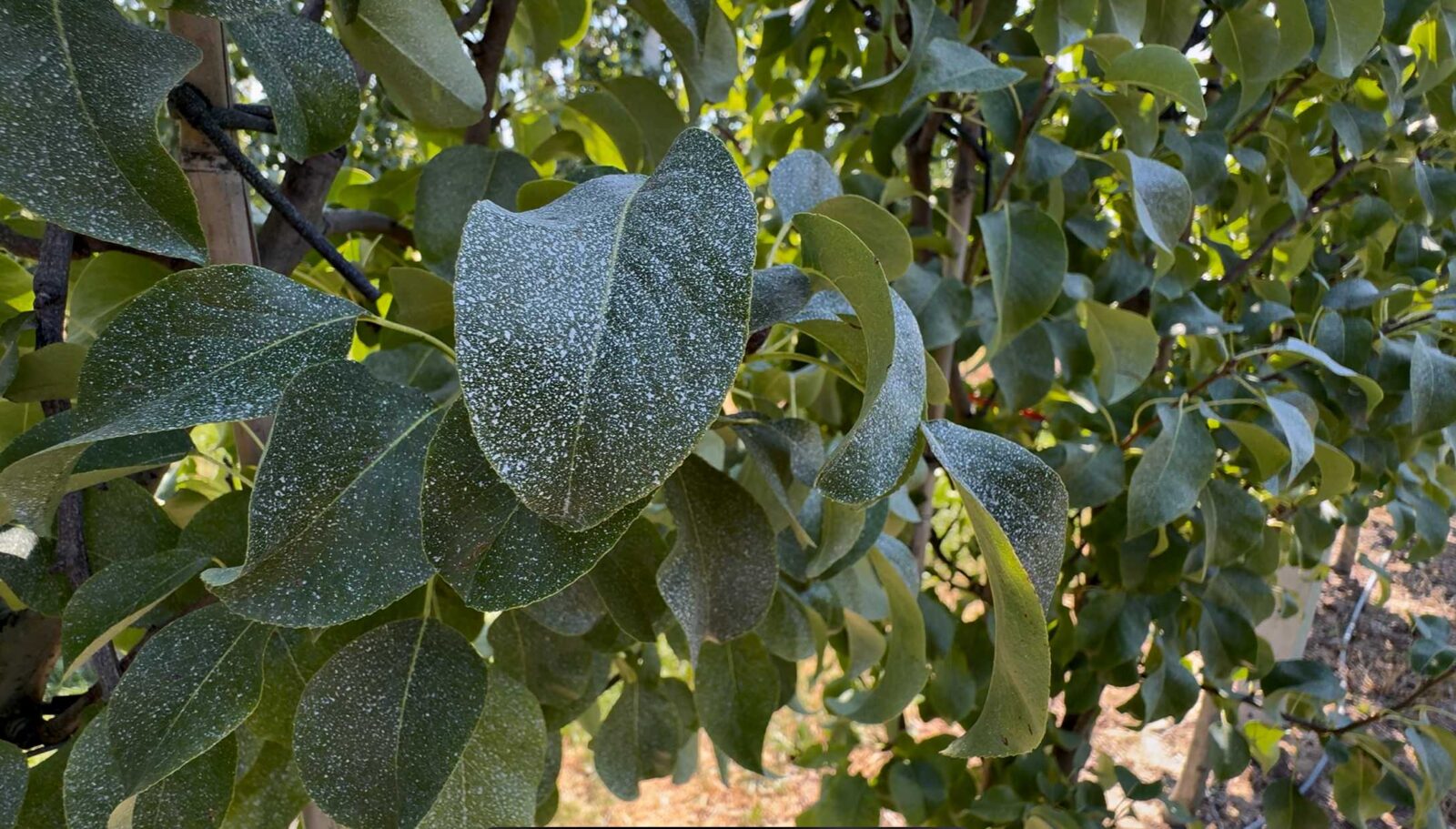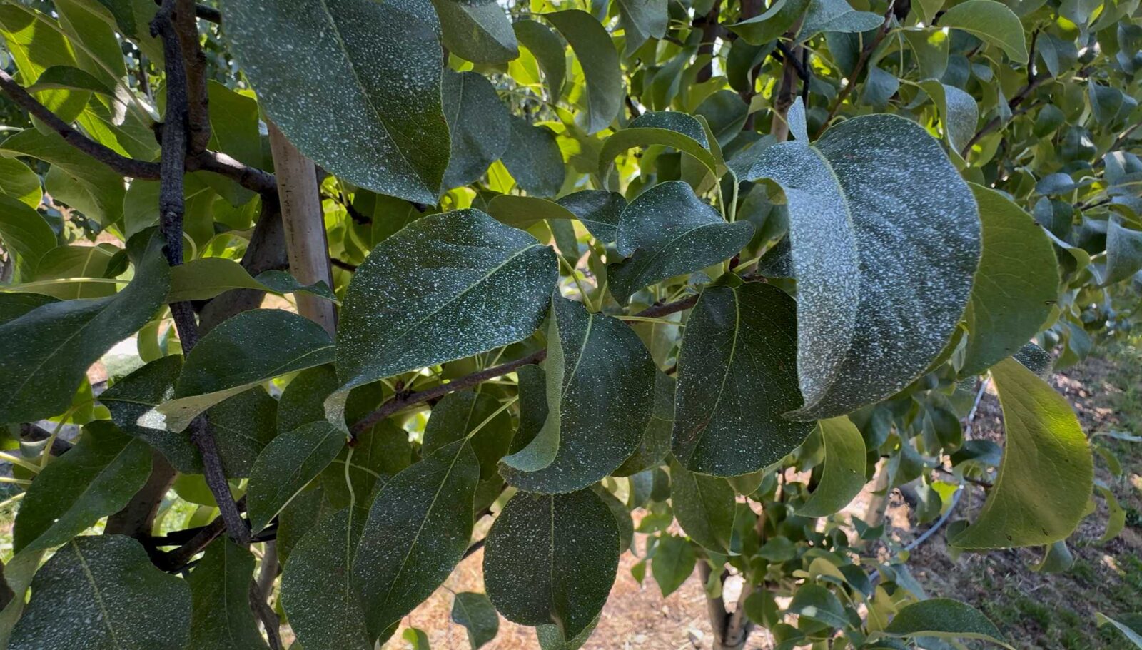 Łukasz Brzeziński, sadownik z gminy Kowiesy, dzieli się swoimi doświadczeniami z zastosowania SELECTYC X w kwaterze gruszy odmiany Konferencja na pigwie C1. Jak sam przyznaje, po niedawnym zabiegu insektycydowym, jego plantację ponownie zaatakowała miodówka gruszowa, co doprowadziło do pojawienia się rosy miodowej na świeżych pędach.