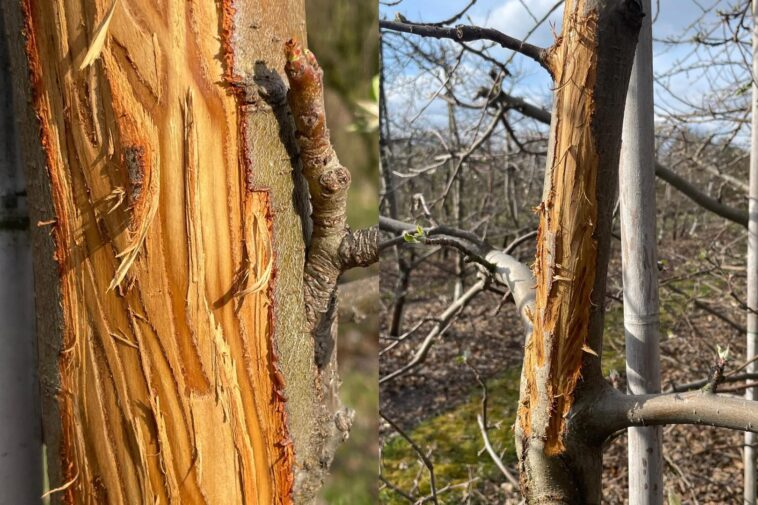 Podczas wizyty w jednym z sadów w województwie łódzkim (gmina Kocierzew Południowy), zwrócono uwagę na poważne uszkodzenia kory na pniach jabłoni. Jak ustalono, były one spowodowane przez łosie, które żerowały w sadzie.