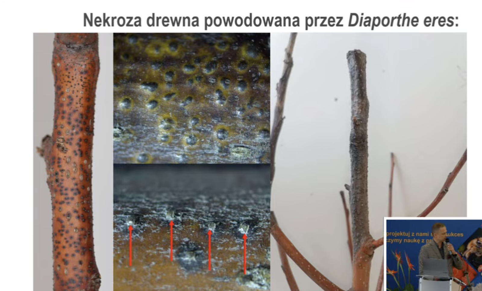 zgnilizna jabłek i gruszek powodowana przez grzyby z rodzaju Diaporthe,