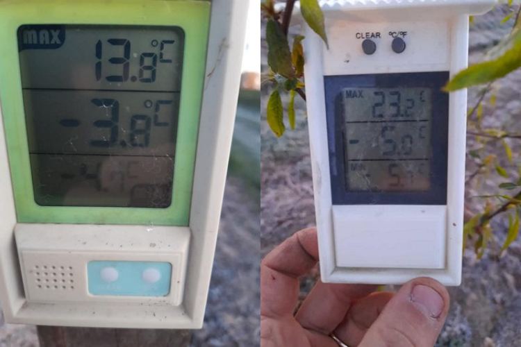 „Nagły i długotrwały spadek temperatury – od północy w środy do rana w czwartek, z ekstremalnymi temperaturami do -6 stopni Celsjusza na równinach – towarzyszyły prawie wszędzie ulewne deszcze, nocne przymrozki i śnieg, nawet na wzgórzach, wpłynął na cały region ”