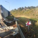 Do zderzenia dwóch ciężarówek doszło w dniu wczorajszym (8 września 2023r.) na trasie S7 w miejscowości Zaborów w powiecie grójeckim. Owoce i warzywa przewożone przez jedną z ciężarówek wysypały się na drogę.
