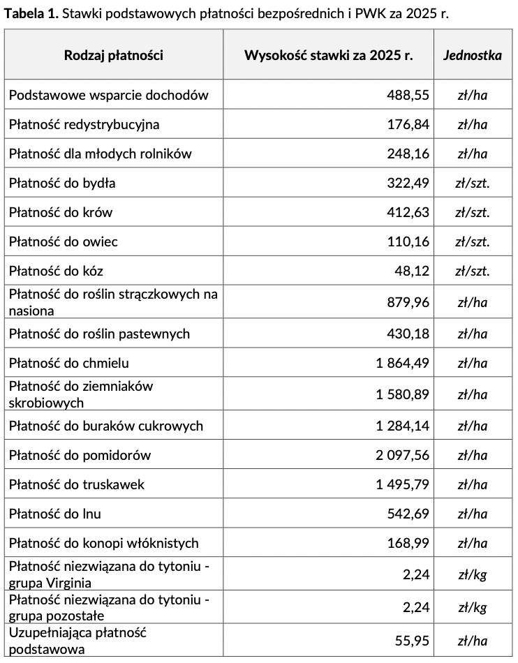MRiRW ogłosiło stawki płatności bezpośrednich i wsparcia krajowego na 2025 rok