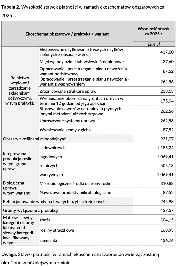 Jak poinformowało Ministerstwo Rolnictwa i Rozwoju Wsi (MRiRW), w oparciu o zaktualizowane dane przekazane przez Agencję Restrukturyzacji i Modernizacji Rolnictwa (ARiMR), w przypadku niektórych płatności w ramach ekoschematów obszarowych ustalono wyższe stawki niż w poprzednim komunikacie resortu. Oznacza to, że część rolników może liczyć na zwiększone wsparcie finansowe za realizację praktyk prośrodowiskowych.