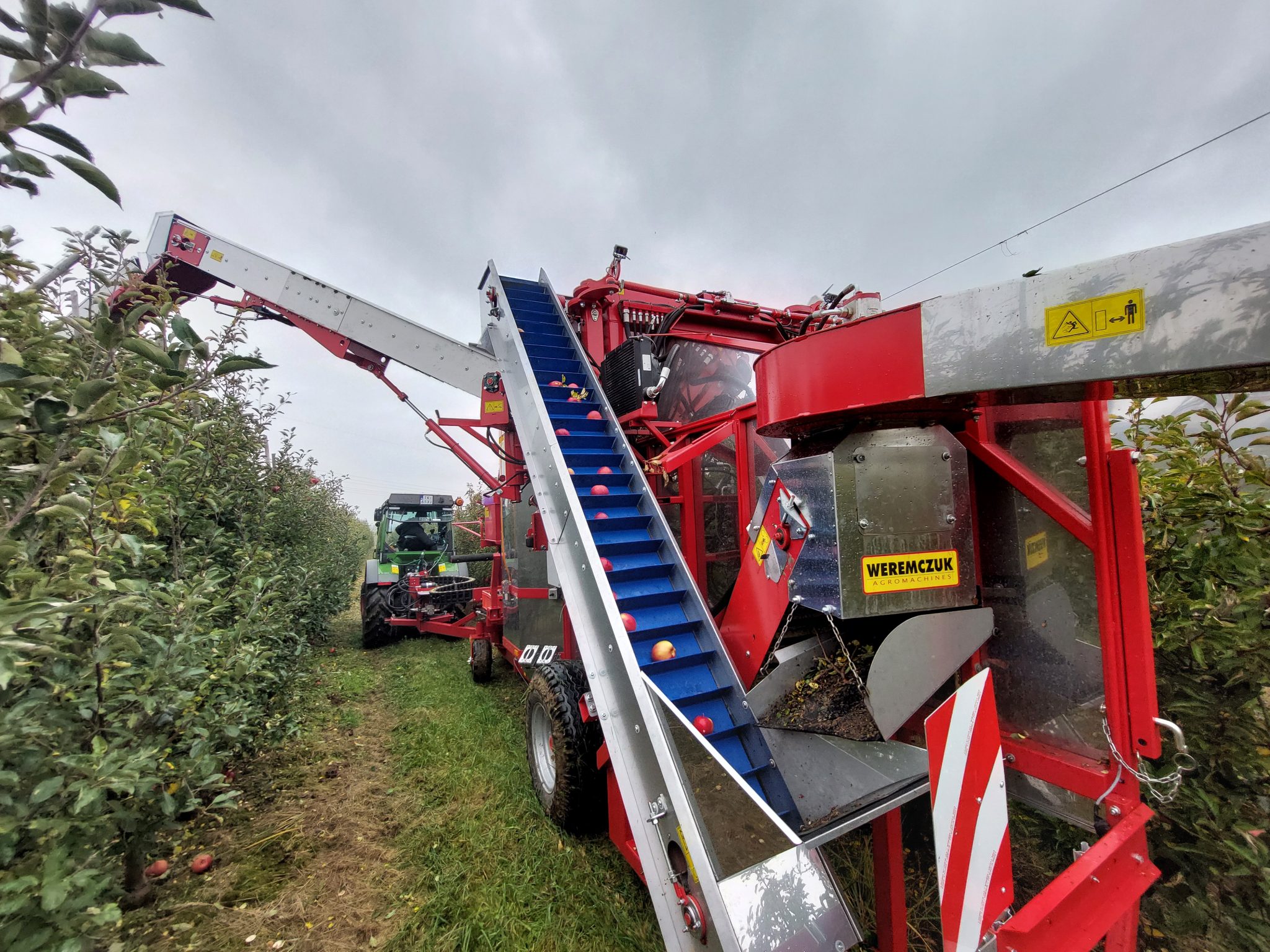 Zapraszamy do oglądania pracy kombajnu Weremczuk Felix z bocznym transporterem podczas zbioru jabłek:
