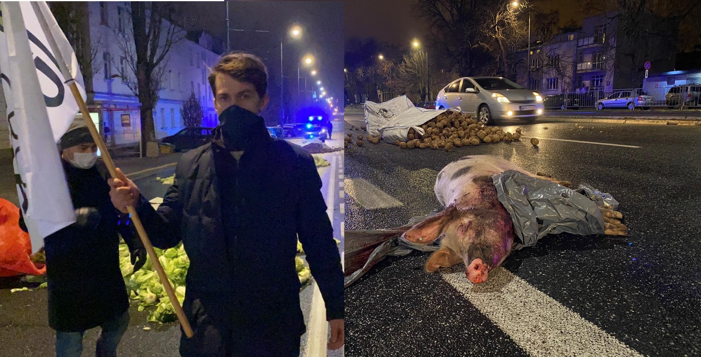 Kilka minut po północy z soboty na niedzielę 13 grudnia, na ul. Piłsudskiego w Warszawie, pojawili się przedstawiciele Agrounii z liderem ruchu Michałem Kołodziejczakiem na czele. Z ich samochodów dostawczych prosto na ulicę posypały się: jaja, kapusta, ziemniaki oraz świńskie tusze.