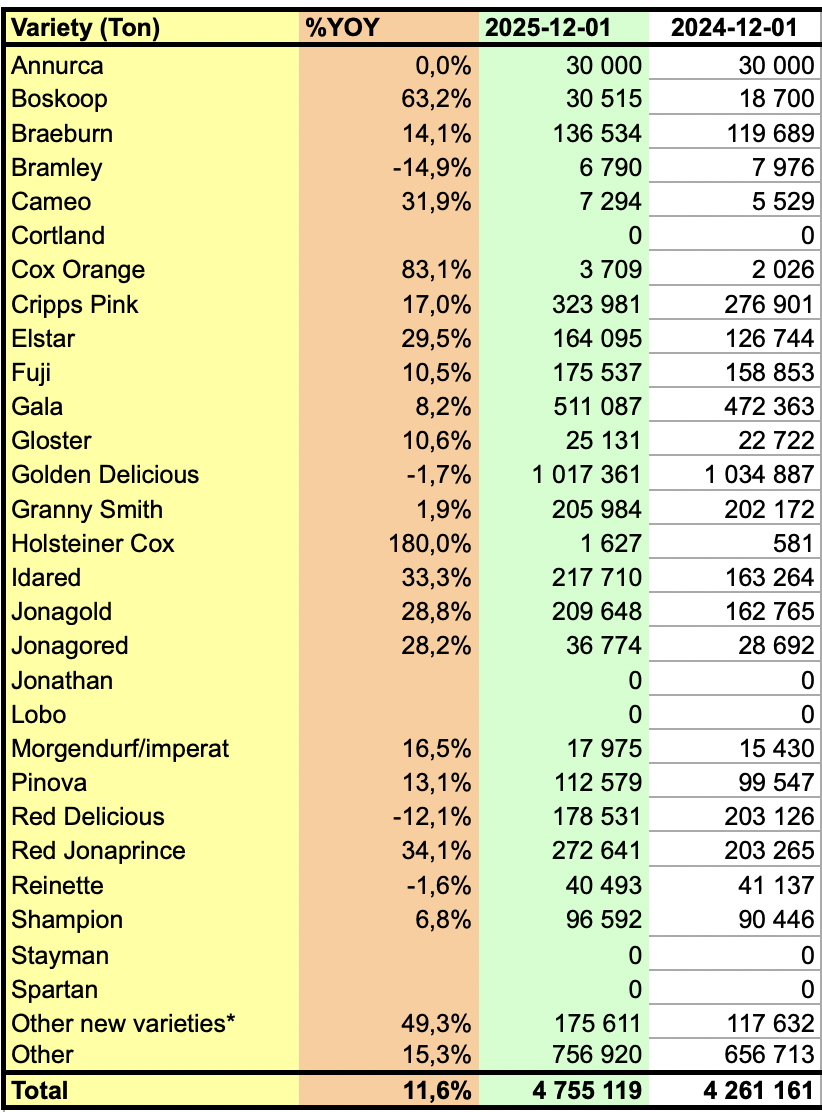 Na 1 grudnia 2025 roku Europa posiada jedne z najwyższych zapasów jabłek w ostatnich latach (większe były w 2021 roku oraz w 2019 roku) Golden Delicious i Gala nadal dominują, ale coraz większą rolę odgrywają Cripps Pink, Red Jonaprince oraz nowe odmiany premium. Rynek wyraźnie pokazuje, że przyszłość nie należy wyłącznie do masy, lecz do jakości, różnorodności i dopasowania do oczekiwań konsumenta.