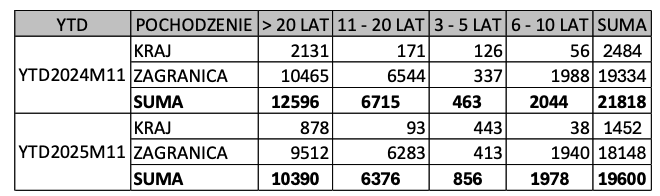 Spadek dotknął zarówno rynku krajowego, jak i importu, ale najbardziej widoczny jest w grupie sprowadzanych maszyn – ich liczba zmniejszyła się aż o ponad 1 100 sztuk.