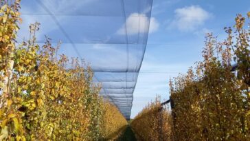Bardzo dobrze rozprasza światło, co pozwala uzyskać dużo światła w dolnych partiach drzew. Nie tracimy owoców w dolnej partii drzewa, jest równomierne rozłożenie owoców – informuje Krzysztof Zatorski.