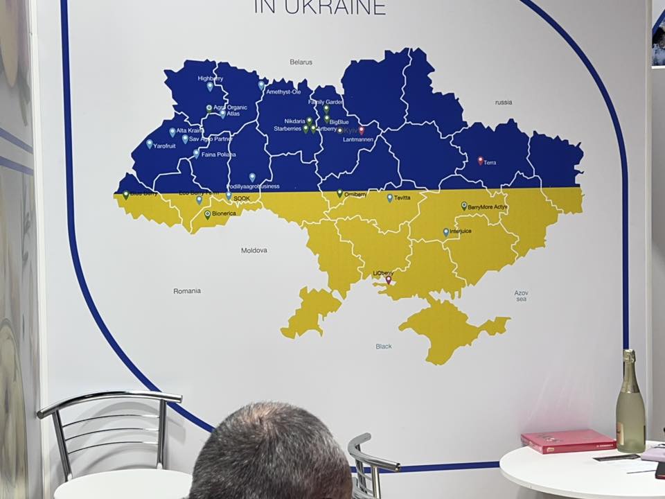 Na stoisku ukraińskim poświęconym owocom jagodowym znalazła się mapa, na której zaznaczono sąsiadów tego kraju. Już na pierwszy rzut oka uwagę przykuwało to, że Rosja została zapisana małą literą – gest, który można by uznać za symboliczny „pstryczek w nos” w stronę agresora. Jednak znacznie bardziej niepokojące było to, że… Polska w ogóle nie pojawiła się na tej mapie.