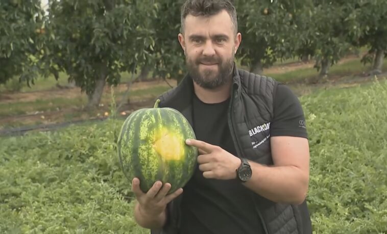 Na polach rośliny szczelnie pokryły ziemię i wydały plon. – Rynek najlepiej przyjmuje arbuzy ważące od dwóch do dziesięciu kilogramów. My staramy się celować w przedział cztery–osiem kilogramów – mówi sadownik Szymon Kamiński w wywiadzie dla TVP Łódź. Dodaje jednak, że ten rok nie należał do łatwych: owoce zawiązywały się nierówno, co sprawiało, że niektóre egzemplarze osiągały wagę ponad dziesięciu kilogramów, a inne zaledwie dwóch.