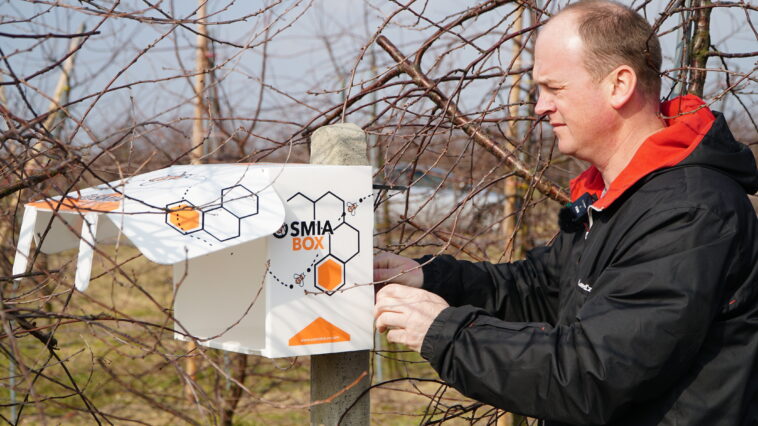 Rozstawianie uli OSMIA BOX dla murarki ogrodowej, przy użyciu aplikacji BEEGROW