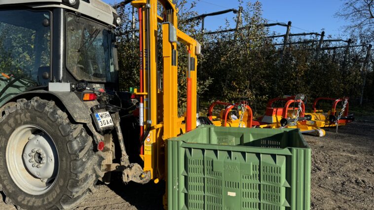 Niezbędne maszyny do pracy w sadach – podnośnik, kosiarka, rozdrabniacz, wygarniacz [VIDEO]