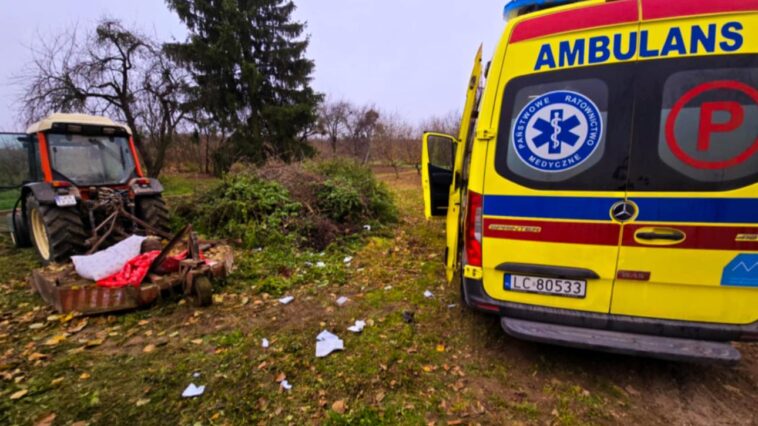• Mężczyzna został przygnieciony podczas pracy w sadzie przez ciągnik