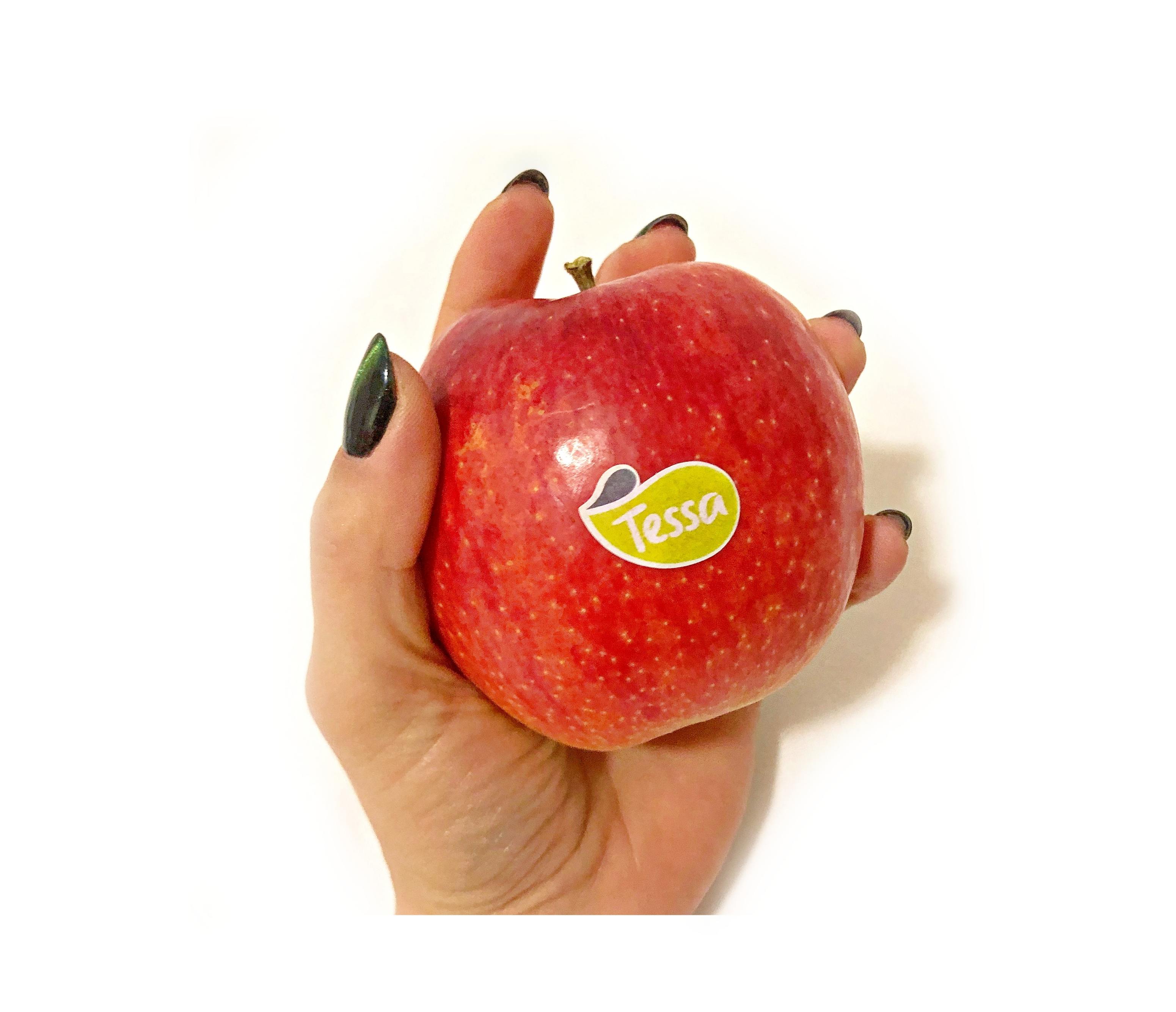 Jest to krzyżówka Gali i Pink Rose, podczas wywiadu zapytałam czy #Tessa jest sportem Gali – NIE JEST. Jabłko jest bardzo smaczne – miałam okazję próbować, miąższ w środku jest odrobinę przypominający naszego Jonagolda. Tessę na targach prezentowano w rozmiarze 7,5 + do 8,5, jabłka były mniej lub bardziej wybarwiowne.