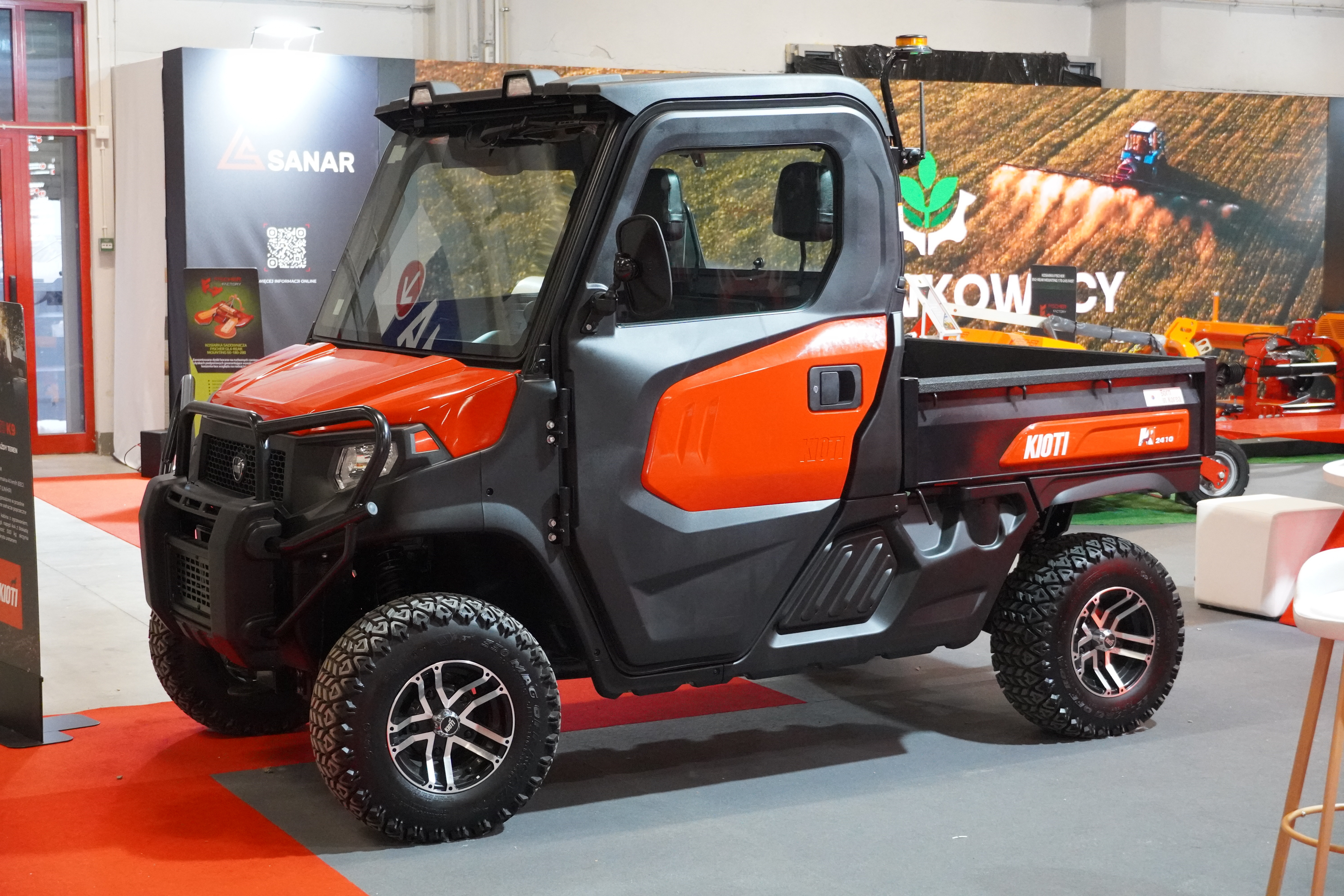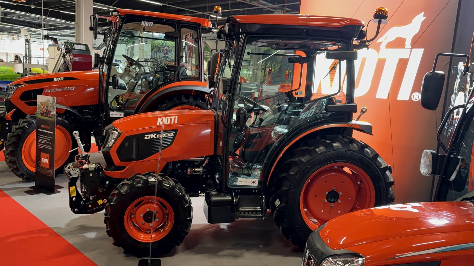 Kolejną gwiazdą stoiska był Kioti RX8040 – ciągnik o mocy 74 KM z czterocylindrowym silnikiem. Wyposażony w koła rzędowe oraz duży prześwit, doskonale sprawdza się w uprawach warzywniczych.