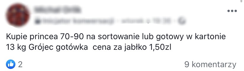Obecnie ceny za jabłka deserowe w zależności od rozmiaru oraz odmiany i wybarwienia kształtują się od 0,80zł/kg do 2zł/kg. Najtańsze są jabłka małe 55-65. Najdroższa jest Gala Royal i Golden Delicious. Niżej zamieszczam kilka przykładowych cen za jabłka deserowe:
