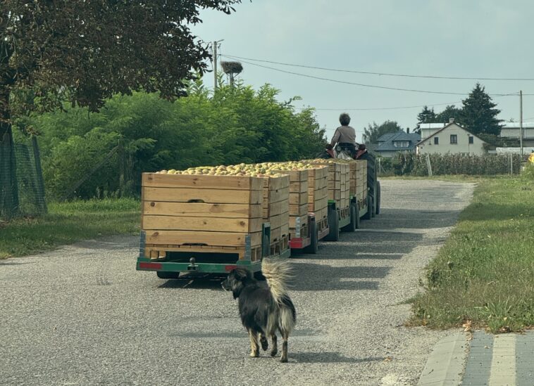 Na pierwszy rzut oka sprawa wydaje się banalna. Sadownik kończy zbiory, podczepia do ciągnika dwa lekkie wózki – każdy po 450 kilogramów, załadowane skrzyniami z jabłkami – i rusza do gospodarstwa. Droga publiczna, zaledwie kilometr, kilka minut jazdy.