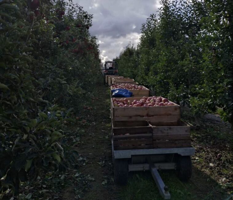 Na miejscu policjanci ustalili, że 58-letnia obywatelka Ukrainy pomagała przy zbiorze jabłek. Podczas pracy polegającej na zbieraniu jabłek i wysypywaniu ich do skrzyniopalet znajdujących się przyczepie podpiętej pod ciągnik, 58-latka została uderzona przyczepą. 61-letaniej kobiecie kierującej ciągnikiem ześlizgnęła się noga z padała hamulca, w wyniku czego ciągnik wraz z przyczepą załadowaną jabłkami cofnął się uderzając w nogę 58-latki. Poszkodowana kobieta z urazem nogi trafiła do szpitala. Na szczęście jej życiu i zdrowiu nie zagraża niebezpieczeństwo. Kobiety biorące udział w zdarzeniu były trzeźwe.
