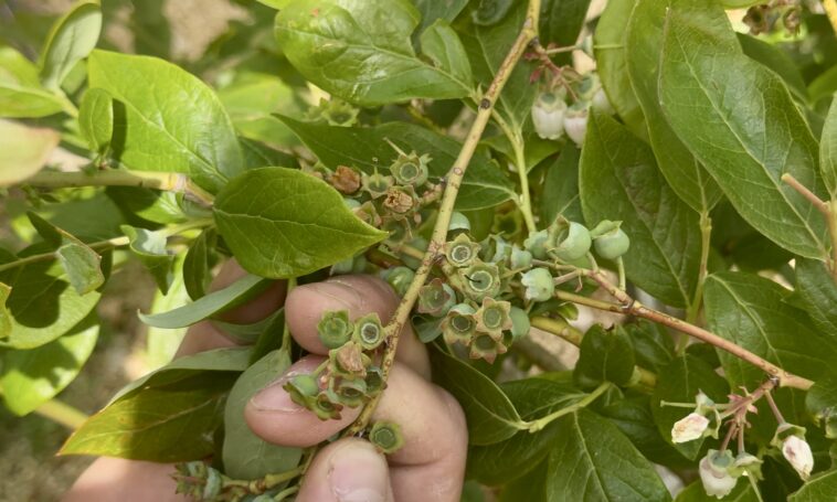 Paweł Radecki, doświadczony plantator borówki amerykańskiej z Olkowic, w swoich uprawach stawia na odmiany Duke, Chandler i Liberty, dojrzewające w tej właśnie kolejności. Tegoroczny sezon wegetacyjny przyniósł już pierwsze wyzwania. Początek kwitnienia borówki naznaczony był niekorzystnymi spadkami temperatur i przymrozkami, które niestety odcisnęły swoje piętno na owocach.