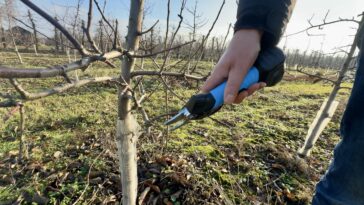 Trwa cięcie zimowe sadów. Niegdyś najczęściej stosowane były sekatory jedno i dwuręczne, teraz w większości stosuję się sekatory elektryczne oraz pneumatyczne. Sekatory elektryczne są bardzo komfortowe dla sadowników oraz wpływają na szybsze wykonywanie pracy w sadzie.