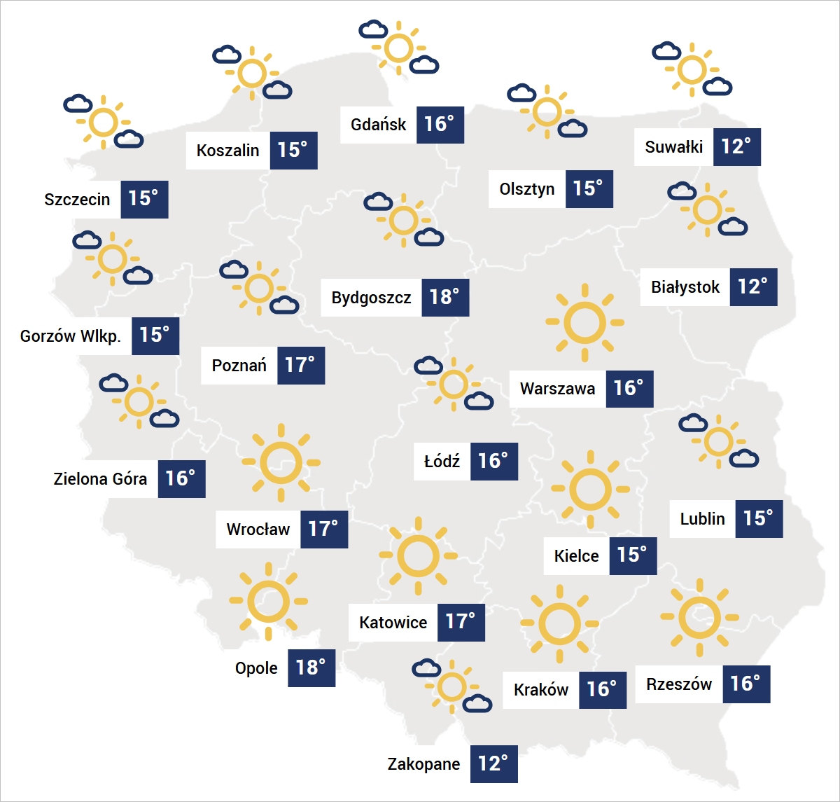 Problem stwarzać mogą jednak częste, miejscami obfite opady. Są one potrzebne, aby całkowicie wyeliminować wielomiesięczną suszę. Jednak od drugiej połowy tygodnia w wielu regionach kraju spodziewamy się większych przejaśnień i rozpogodzeń, nawet do zupełnie wolnego od chmur nieba.